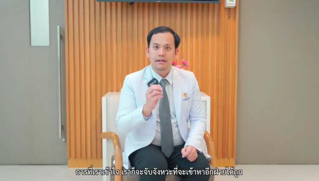 " ปัญหาของโรคซึมเศร้าสมัยนี้ รวมถึงโรคจิตเวชอยู่ในครอบครัวทุกครอบครัวทั่วประเทศไทย เพราะฉะนั้น หมอถึงอยากให้เข้าใจกันและกัน แล้วก็นำมาสู่การรักษา รวมถึงปัญหาชีวิตคู่ทั่วๆไป ในบุคคลทั่วไป หากมีปัญหาชีวิตคู่เล็กๆน้อยๆ เองก็ตาม การหาตัวกลางอย่างจิตแพทย์ หรือนักจิตบำบัด ที่จะเป็นตัวกลางคอยช่วยไกล่เกลี่ย หรือคอยช่วยกระตุ้นมีการสื่อสารระหว่างความขัดแย้งที่เกิดขึ้นไปในเชิงบวก ก็จะทำให้ความสัมพันธ์ของคนในครอบครัวยิ่งยืนยาวต่อไปครับ.."
