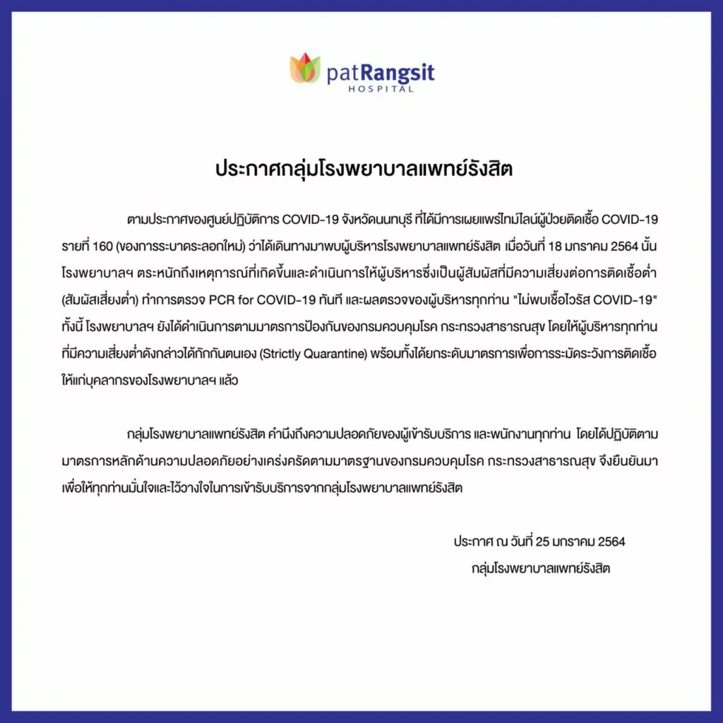 ประกาศกลุ่มโรงพยาบาลแพทย์รังสิต