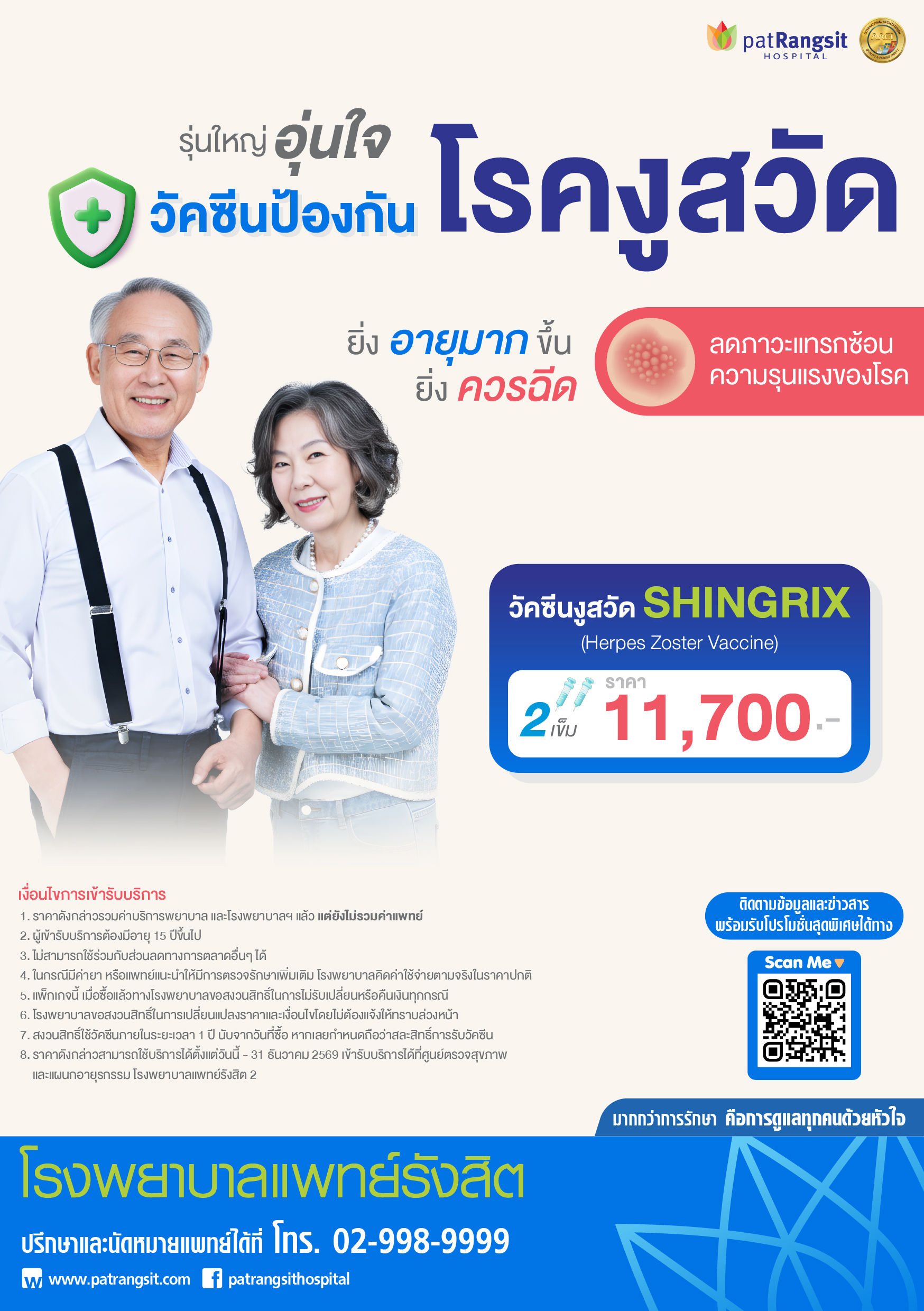 - ราคาดังกล่าวสามารถใช้บริการได้ตั้งแต่วันนี้ - 31 ธันวาคม 2569 เข้ารับบริการได้ที่ศูนย์ตรวจสุขภาพละแผนกอายุรกรรมโรงพยาบาลแพทย์รังสิต 2