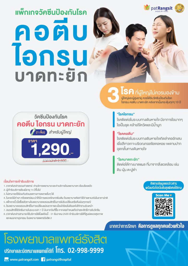 - ราคาดังกล่าวสามารถใช้บริการได้ตั้งแต่วันนี้ - 31 ธันวาคม 2569 เข้ารับบริการที่ศูนย์ตรวจสุขภาพ โรงพยาบาลแพทย์รังสิต 2